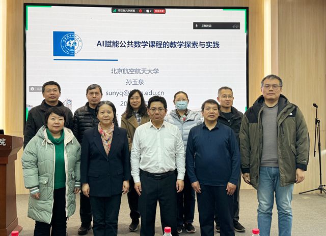 2025年3月5日下午,55直播 依托名师工作坊组织开展AI赋能教育教学研讨会,邀请北京航空航天大学高等理工55直播 副院长孙玉泉教授做题为“AI赋能公共数学课程的教学探索与实践”的专题报告。55直播 教学副院长黎汉生、北京市教学名师李晖、教学团队负责人、骨干教师及智慧树网工作人员等参加了本次教学研讨活动。会议由李晖教授主持。