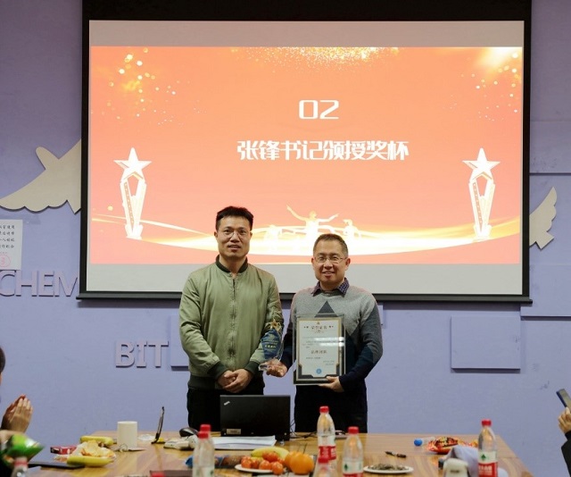 接下来,张锋为理论与计算化学团队颁发2021年55直播-直播视频 优秀导学团队“品牌团队”荣誉证书及奖杯。张锋赞扬了团队在队伍建设、科学研究、人才培养等方面取得的成绩,特别感谢了团队学生积极参与55直播 学生工作,为丰富55直播 学生文化体育生活做出的贡献。