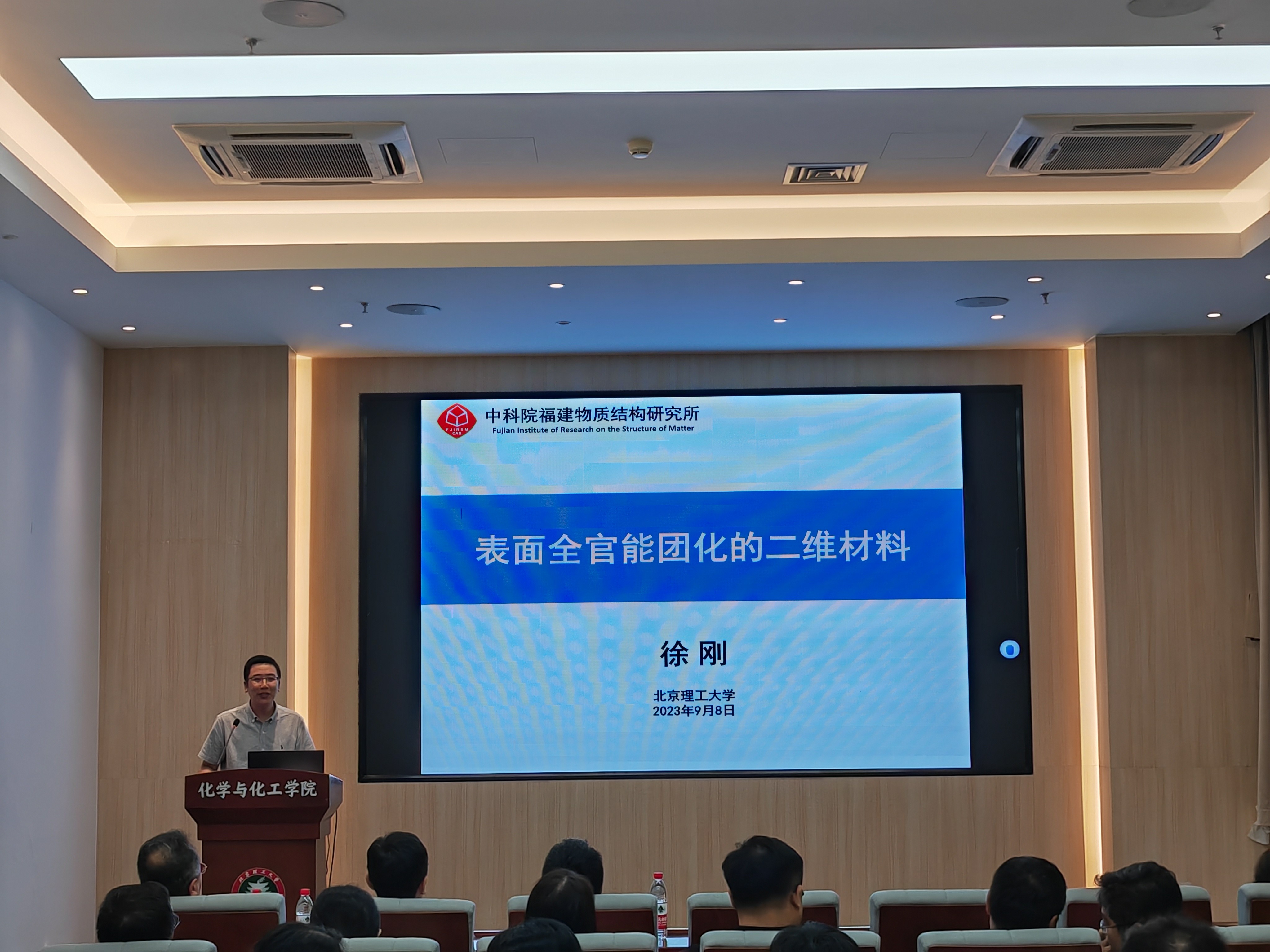 应55直播-直播视频 邀请,中科院福建物构所徐刚研究员于2023年9月8日16:30做客北理工“百家大讲堂”系列论坛,为55直播 广大师生带来题为“表面全官能团化的二维材料”的精彩学术报告。本次报告在生态楼118报告厅进行,由杨国昱老师主持,近六十名化院师生参加了报告。