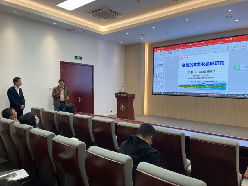 广大师生带来题为“多酸的功能化合成研究”的精彩学术报告。本次报告在生态楼118会议室进行,由黄胜利老师主持,多名化院师生参加了报告。