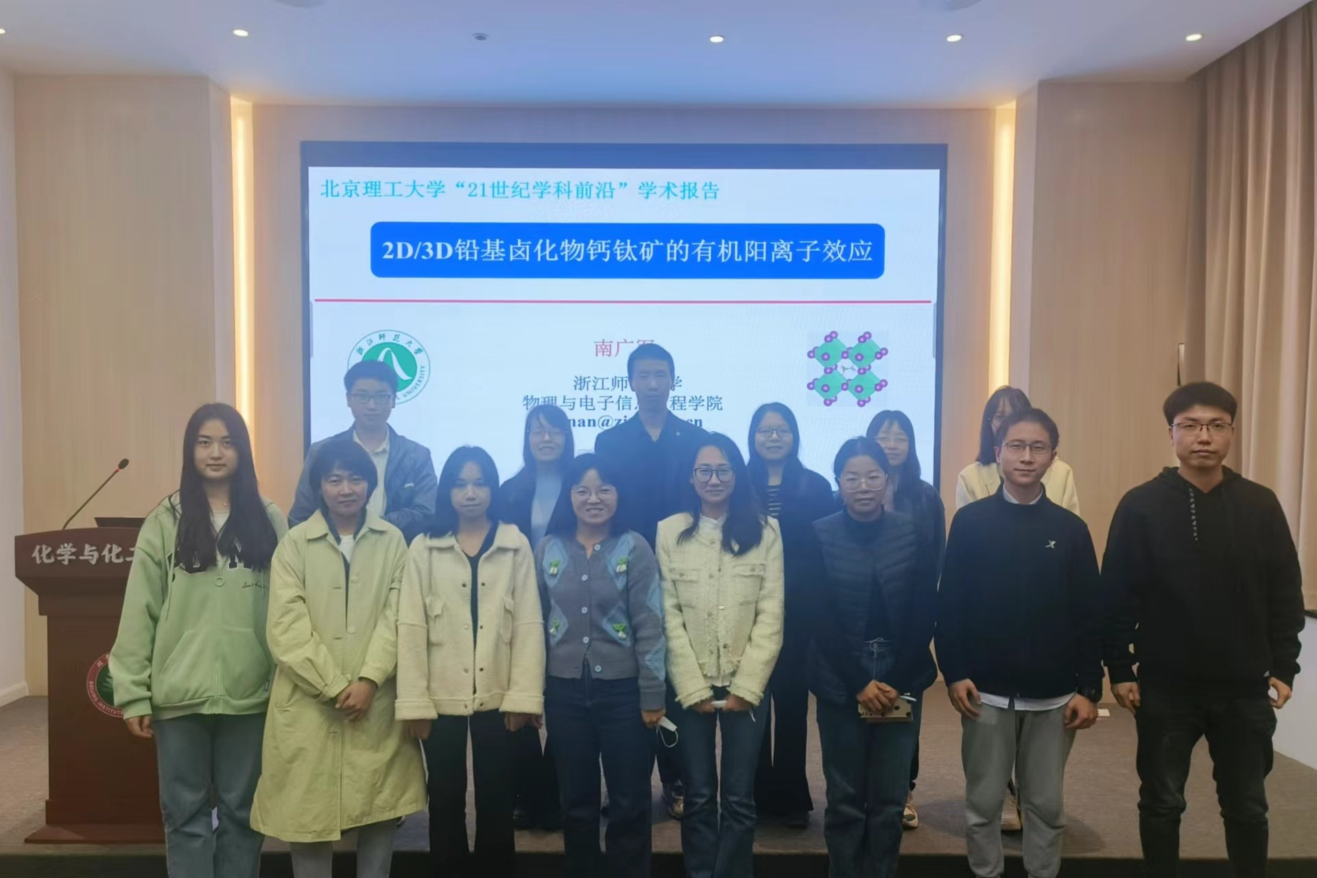 2023年10月31日下午14点,由55直播-美女直播 研究生院主办,55直播 承办的“21世纪学科前沿”系列学术论坛于工业生态楼118会议室举行。浙江师范大学南广军教授到访55直播 并作题目为“2D/3D铅基卤化物钙钛矿的有机阳离子效应”的精彩学术报告。三十余名师生参加了本次讲座。